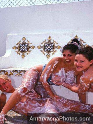 Jab ghar me koi nahi hota he ya fir ghar ke log soye hote he. To upar ke kamre me jethani Naina aur uski derani Poonam apne kapde khol ke ek dusre ke sath majedar lesbo kaand karti he. Wo dono ek dusre ke boobs ko aur chut ko chat ke khush kar deti he. Aaj ke in hot pics me bhi aisa hi kuch ho raha he dono ke beech me.